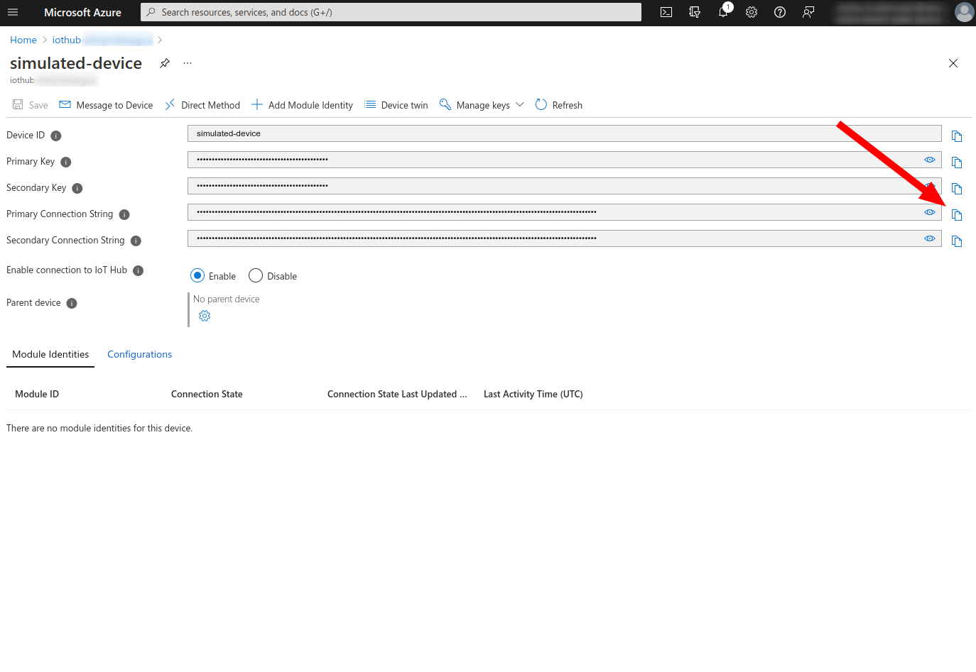 Now copy the connection string for the device.